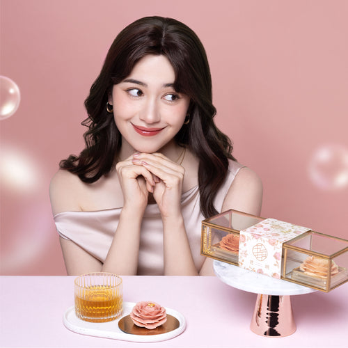 手工牡丹花月餅連玻璃禮盒 (手炒芝麻麻糬、花生奶黃麻糬、伯爵茶流心)